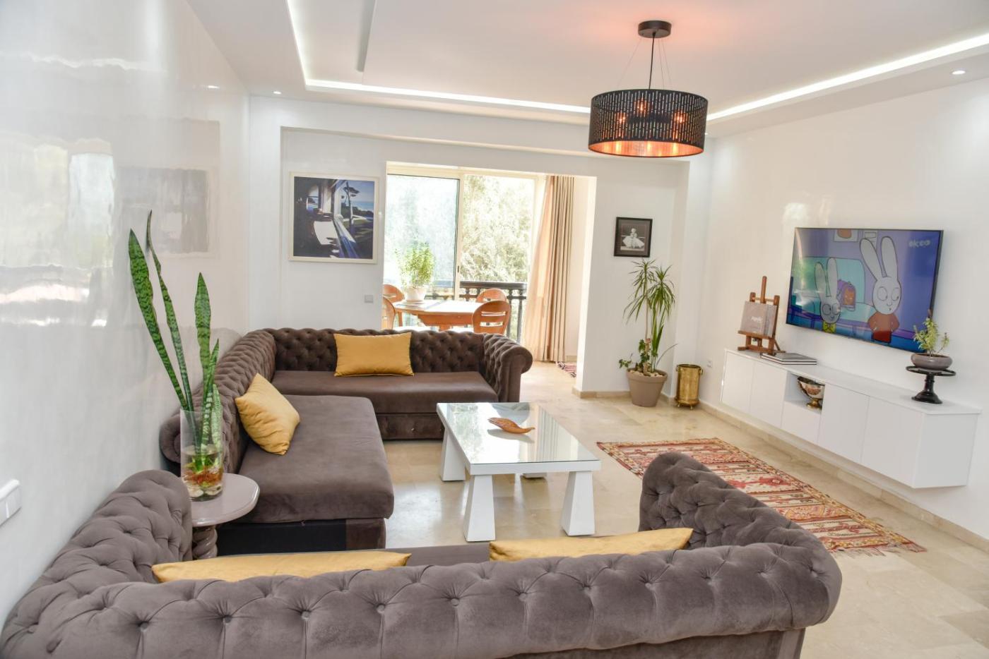 In a central area of Agadir, located within a short distance of Agadir Beach and Marina Agadir, Marina Agadir Family Sunny Holiday offers free WiFi, air conditioning and household amenities such as a microwave and kettle. Situated on the beachfront, this property has an outdoor swimming pool, a garden and a terrace. Private parking can be arranged at an extra charge.