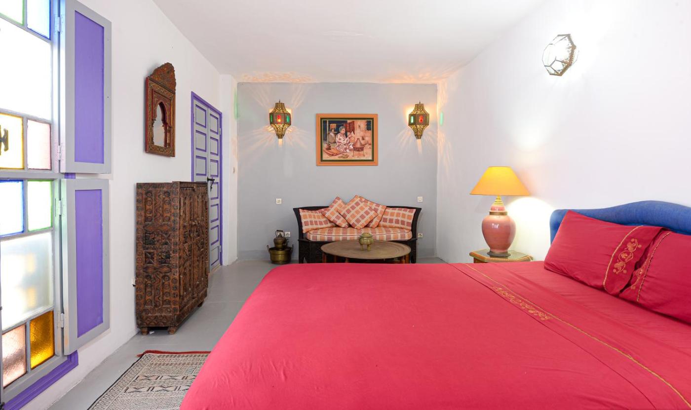 Double Room. All rooms are decorated with Moroccan, antique furniture. They also feature a seating area and a private bathroom. ;