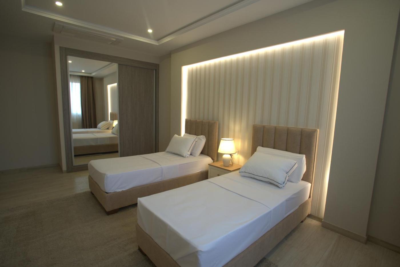 Two-Bedroom Apartment. Featuring a private entrance, this air-conditioned apartment comprises 1 living room, 2 separate bedrooms and 2 bathrooms with a walk-in shower and a bath. Guests can make meals in the kitchen that comes with a stovetop, a refrigerator, a dishwasher and kitchenware. The spacious apartment provides a washing machine, soundproof walls, a tea and coffee maker, a flat-screen TV with streaming services, as well as garden views. The unit offers 4 beds.