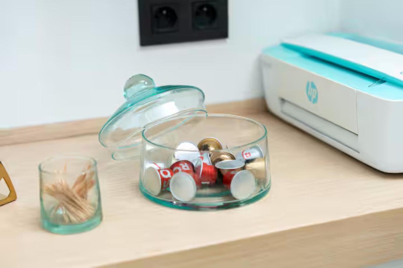 Shared stationery such as printed menus, magazines, pens, and paper removed