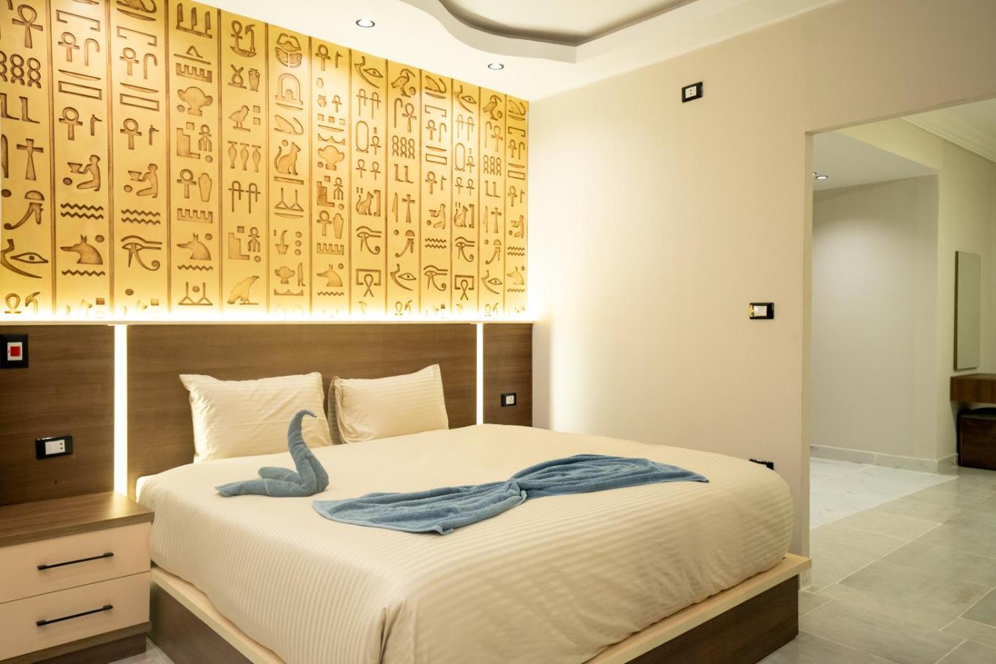 Pharaonic Family Suite with Two Bedrooms. Providing free toiletries, this family room includes a private bathroom with a shower, a bidet and a hairdryer. The spacious family room provides air conditioning, a private entrance, soundproof walls, a minibar and a flat-screen TV with satellite channels. The unit offers 3 beds. ;