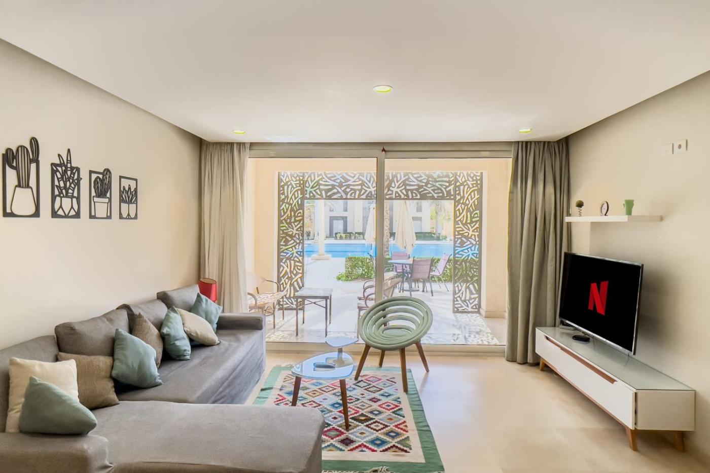 Set in Hurghada, 400 metres from Mangroovy Beach and 35 km from New Marina, Scenic Pool Front 1 BDR Mangroovy Free Pool & Beach offers air-conditioned accommodation with a terrace and free WiFi. Guests can benefit from a patio and a year-round outdoor pool. The property is non-smoking and is located 45 km from Hurghada Grand Aquarium.