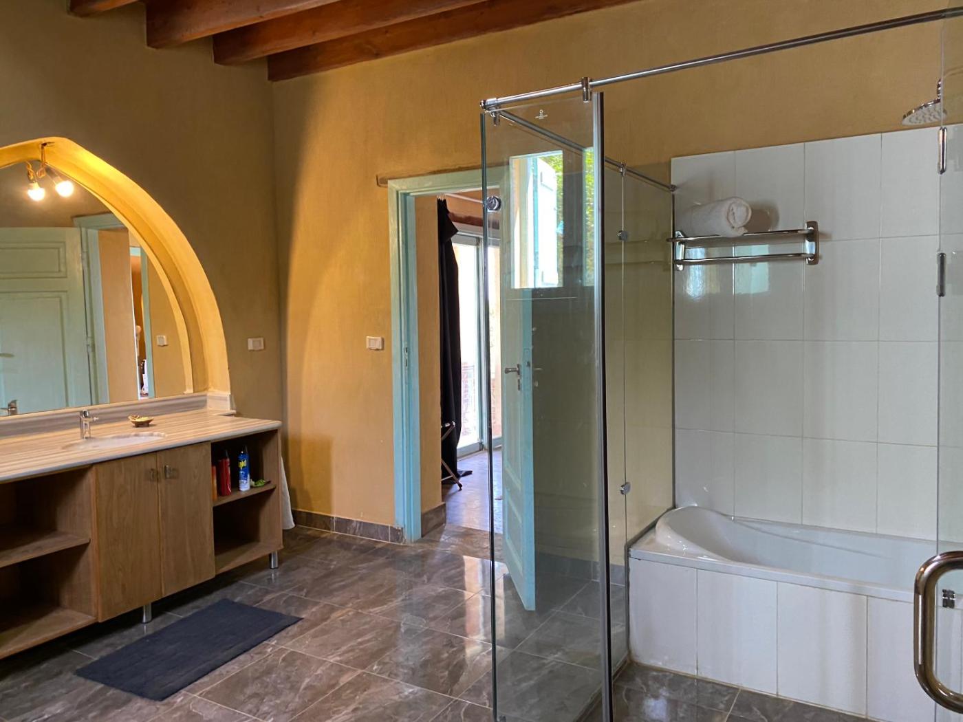 Qarun Lodge. Featuring a terrace with a lake view, this air-conditioned house offers free WiFi, a living room with a flat-screen TV and a kitchen complete with a microwave and a dining table. The bathroom is fitted with a bath and a shower. ;