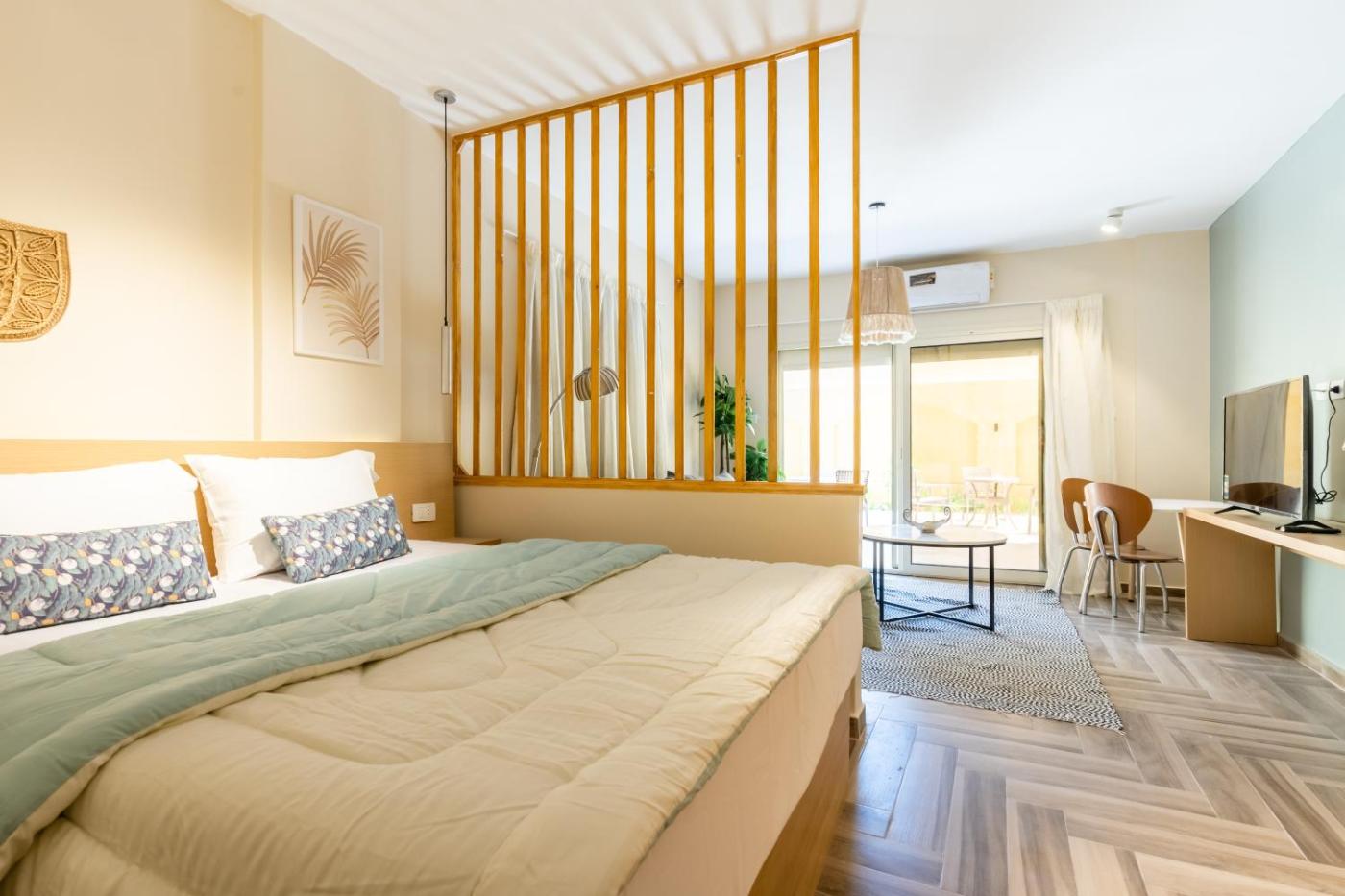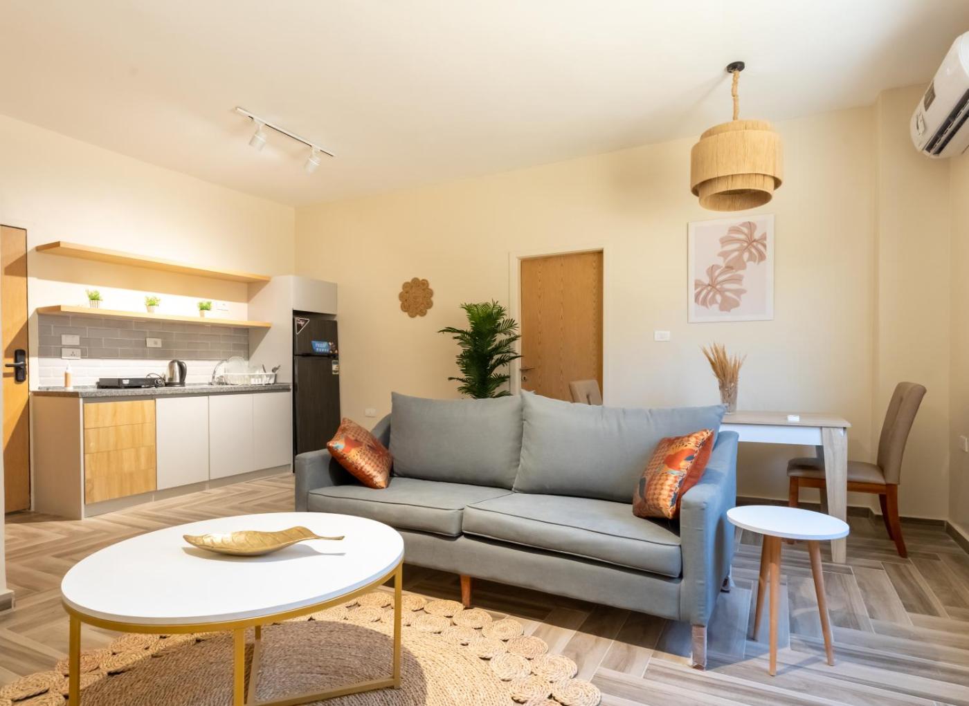 At the apartment complex, each unit has air conditioning, a seating area, a flat-screen TV with satellite channels, a kitchen, a dining area and a private bathroom with free toiletries and a shower. Free WiFi is accessible toguests, while some rooms include a patio. At the apartment complex, units include bed linen and towels.