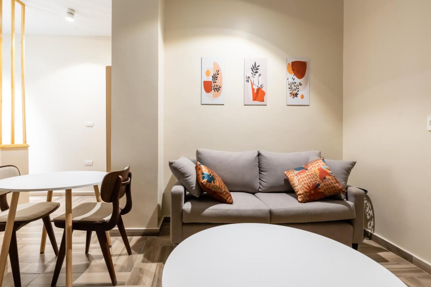 One-Bedroom Apartment. Featuring a private entrance, this air-conditioned apartment is comprised of 1 living room, 1 separate bedroom and 1 bathroom with a shower. The well-fitted kitchen has a stovetop, a refrigerator, kitchenware and an electric kettle. This apartment features a seating area, a dining area, flat-screen TV with satellite channels, as well as chocolate for guests. The unit offers 1 bed. ;