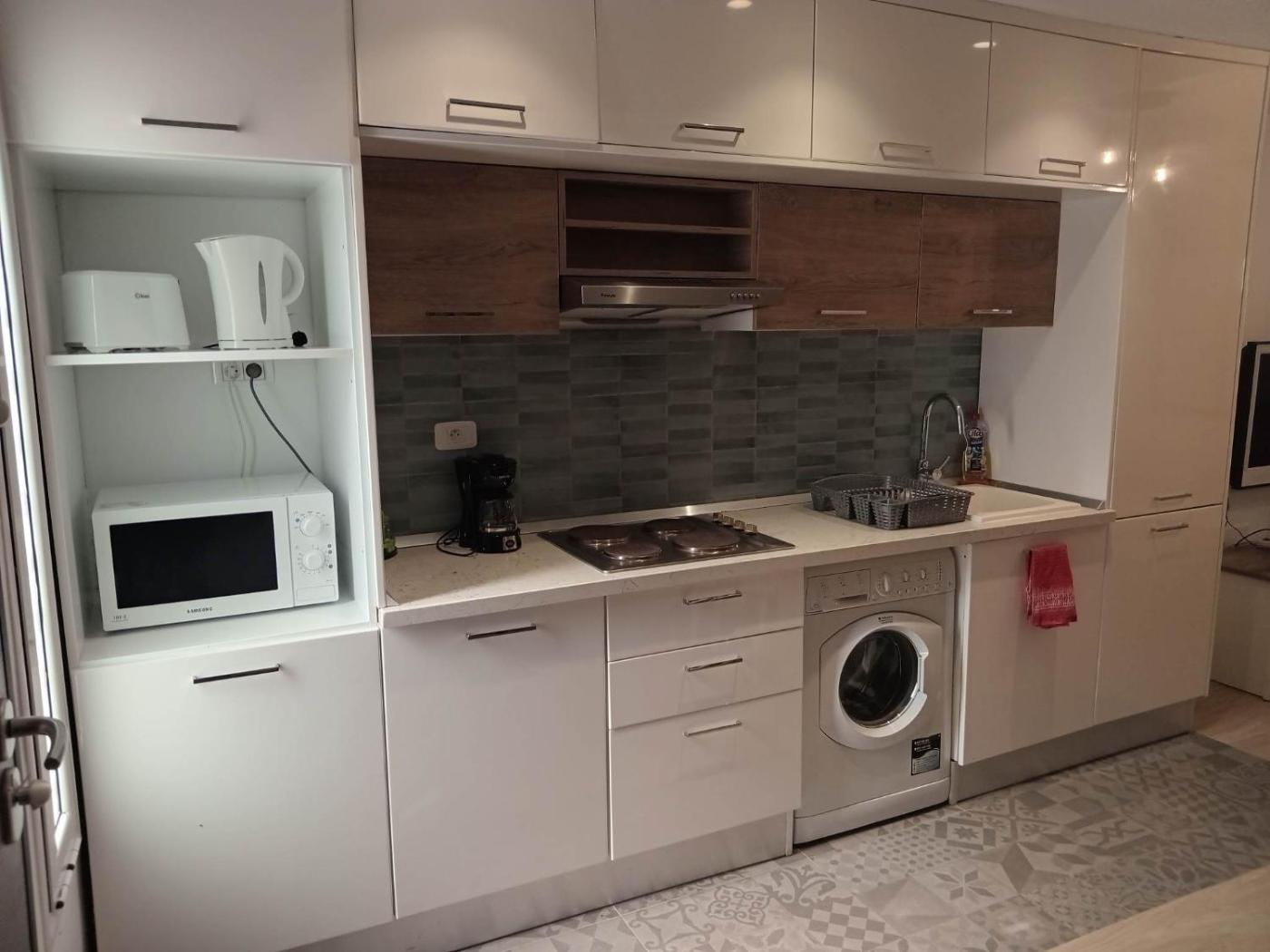 One-Bedroom Apartment. This air-conditioned apartment is comprised of 1 living room, 1 separate bedroom and 1 bathroom with a shower. The fully equipped kitchen features a stovetop, a refrigerator, kitchenware and a microwave. The apartment offers a washing machine, a coffee machine, a dining area, a wardrobe, as well as a flat-screen TV with satellite channels. The unit offers 2 beds.