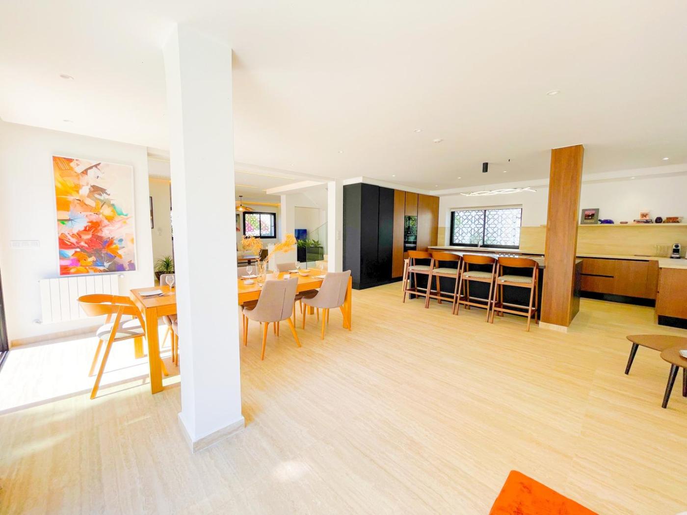 The spacious villa comes with 6 bedrooms, 6 bathrooms, bed linen, towels, a TV with satellite channels, a fully equipped kitchen, and a terrace with garden views. The air-conditioned unit at the property features a shower and a dressing room.