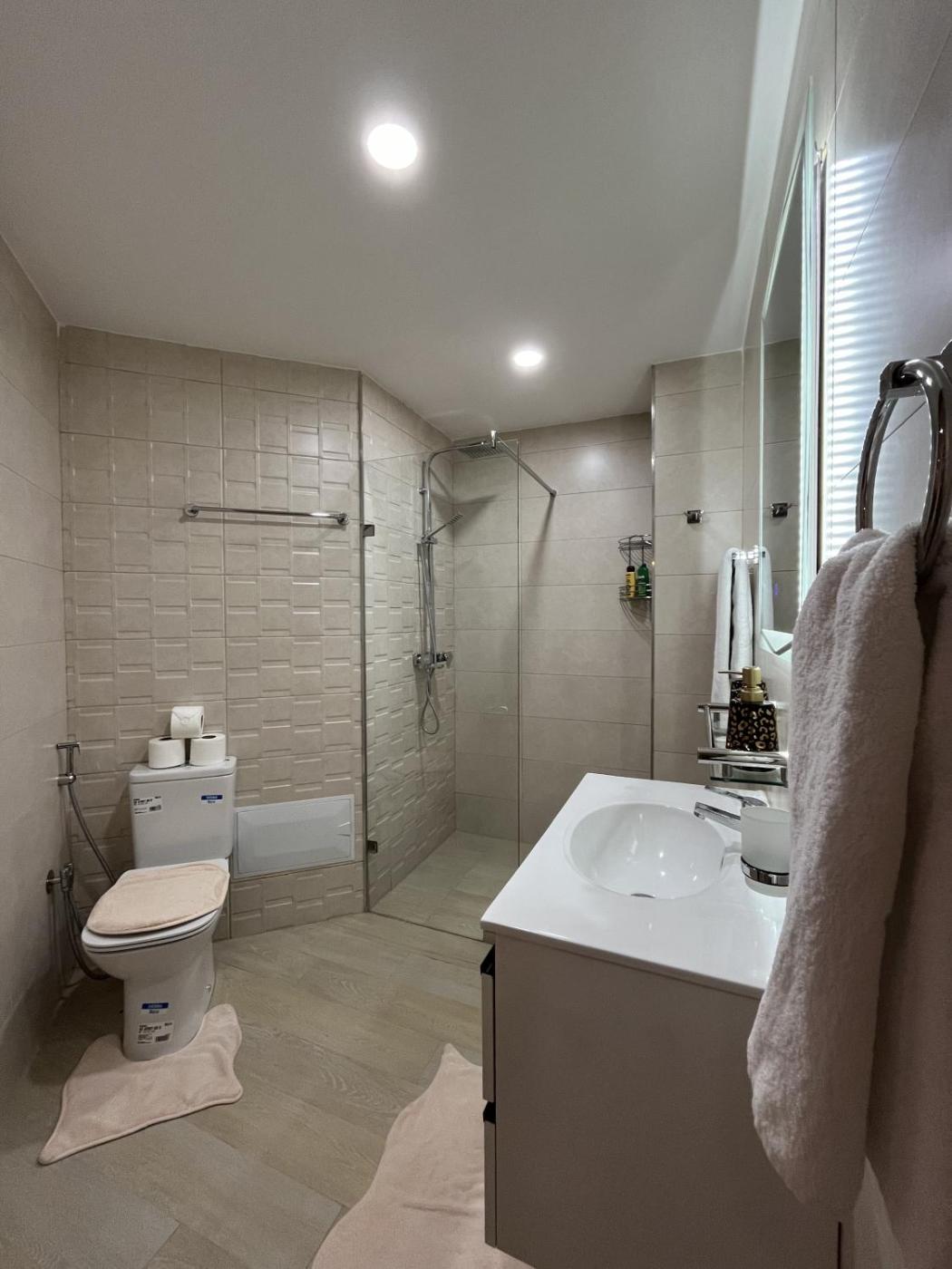 One-Bedroom Apartment. This spacious apartment includes 1 living room, 1 separate bedroom and 1 bathroom with a bath and a shower. The apartments kitchen, which has a refrigerator and an oven, is available for cooking and storing food. The apartment offers air conditioning, a washing machine, a coffee machine, a dining area, as well as a flat-screen TV. The unit has 3 beds.