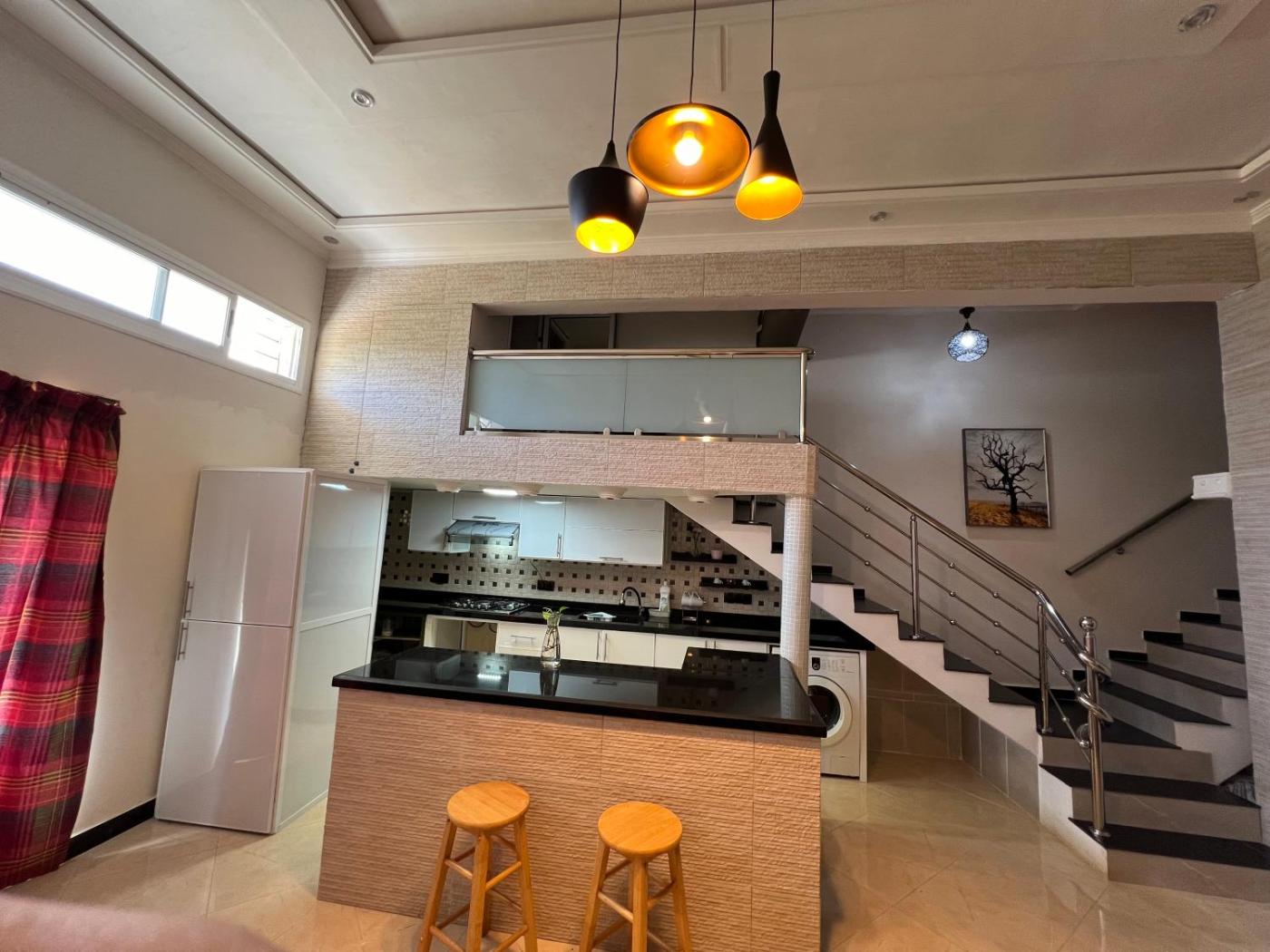 Two-Bedroom House. Guests can make meals in the kitchen that comes with a stovetop, a refrigerator, kitchenware and an electric kettle. The holiday home features carpeted floors, a seating area with a flat-screen TV, a washing machine, a private entrance as well as garden views. The unit offers 3 beds.